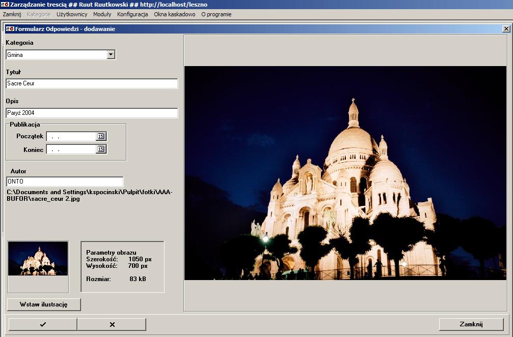 przypisanym modułem "Galeria zdjęć". Ilustracje można publikować w tych